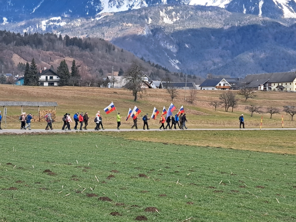 Pot nas je vodila iz Radovljice do Bleda, kjer smo bili postreženi s krofom in kjer je pri Prešernovem spomeniku sledila krajša slovesnost. Pot smo nadaljevali do Vrbe, kjer je bila osrednja prireditev ob kulturnem prazniku. V postroju praporščakov je sodeloval naš praporščak Rudolf Gregorič. Nagovoril nas je župan občine Žirovnica Leopold Pogačar, slavnostna govornica pa je bila Ksenija Benedetti. Slovesnost je popestril glasbeni program s pevskim zborom in Nuško Drašček.